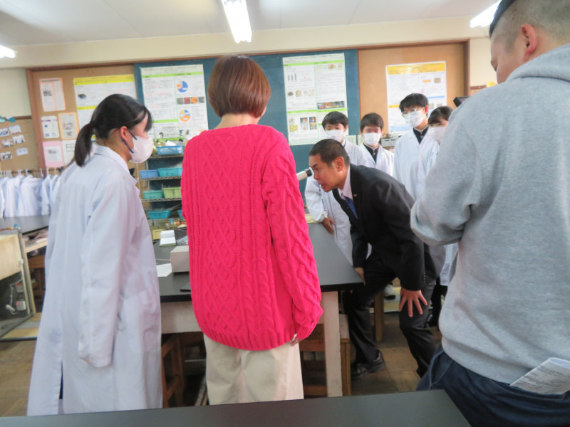 ノッチさんの奥様は、西条高校の制服に関心を持ち、あの記念「リカちゃん人形」に飛びついてくださいました。大手門や陣屋跡に感激しつつ、化学実験室へ向かいます。案内人は大屋教諭✨