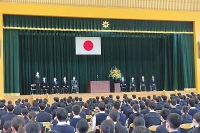 10日(月)、新任式が行われ、生徒に新しく赴任した教職員を紹介しました。新任者代表の挨拶、生徒会長の歓迎の挨拶が交わされました。