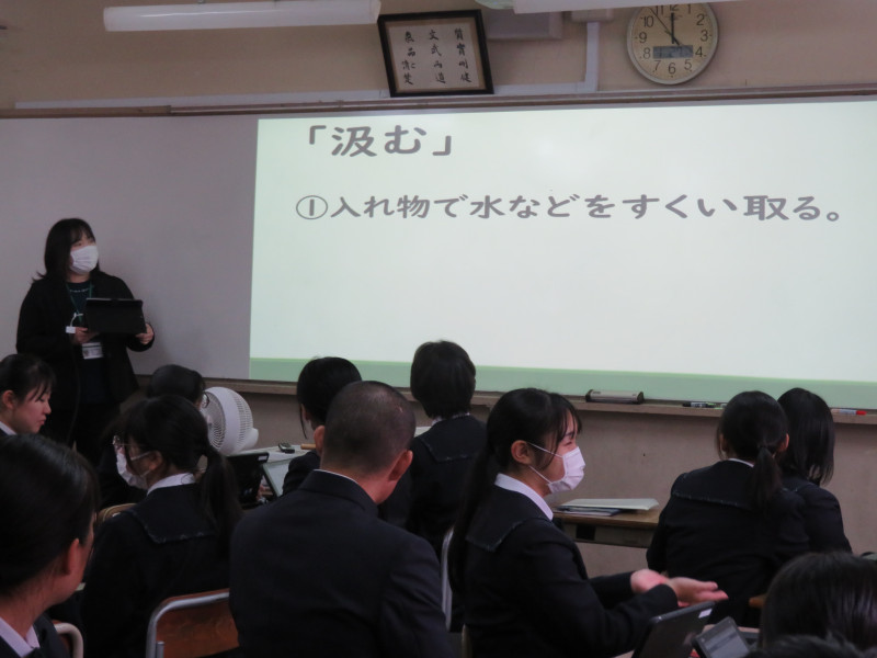 アンケート報告から入り、言葉の意味でハッと気付かせる展開に、生徒も教員も見事に引き込まれていきました。